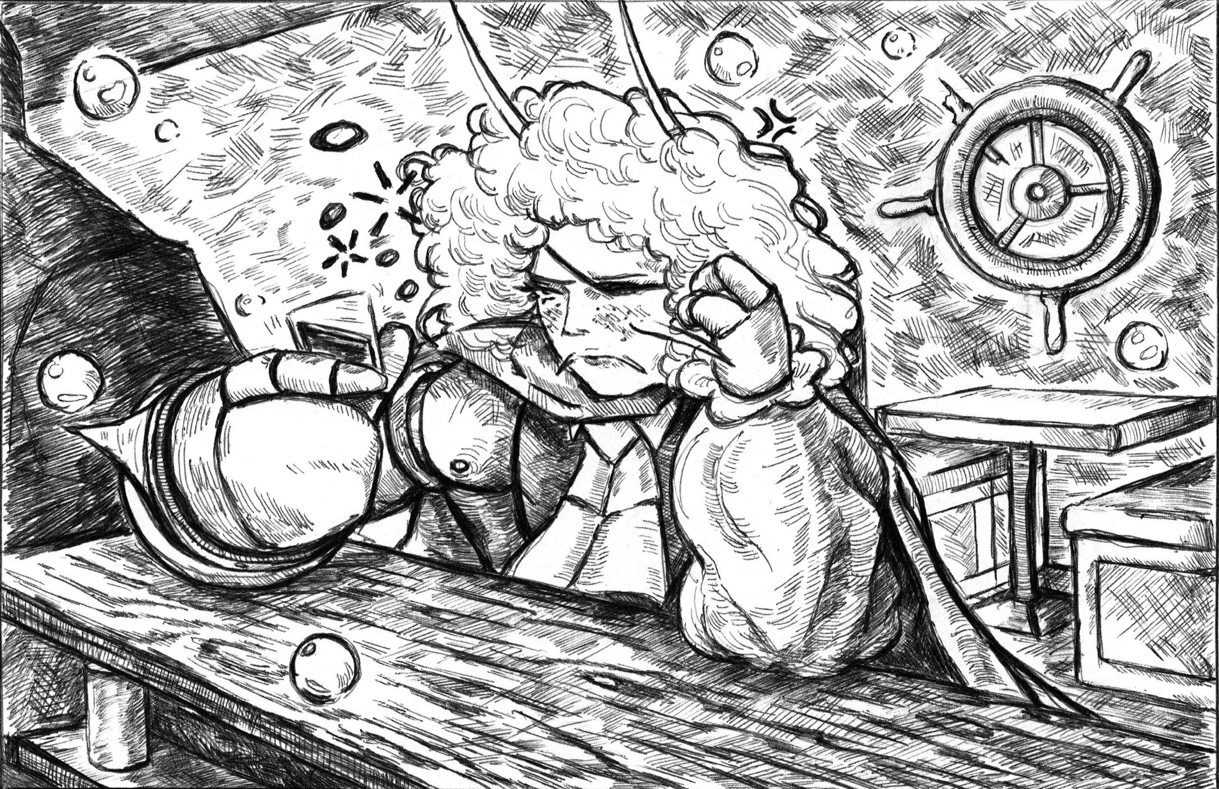 Ballpoint Pen on Watercolor Paper with Digital Touch-ups, 8.5 x 5.5 inch